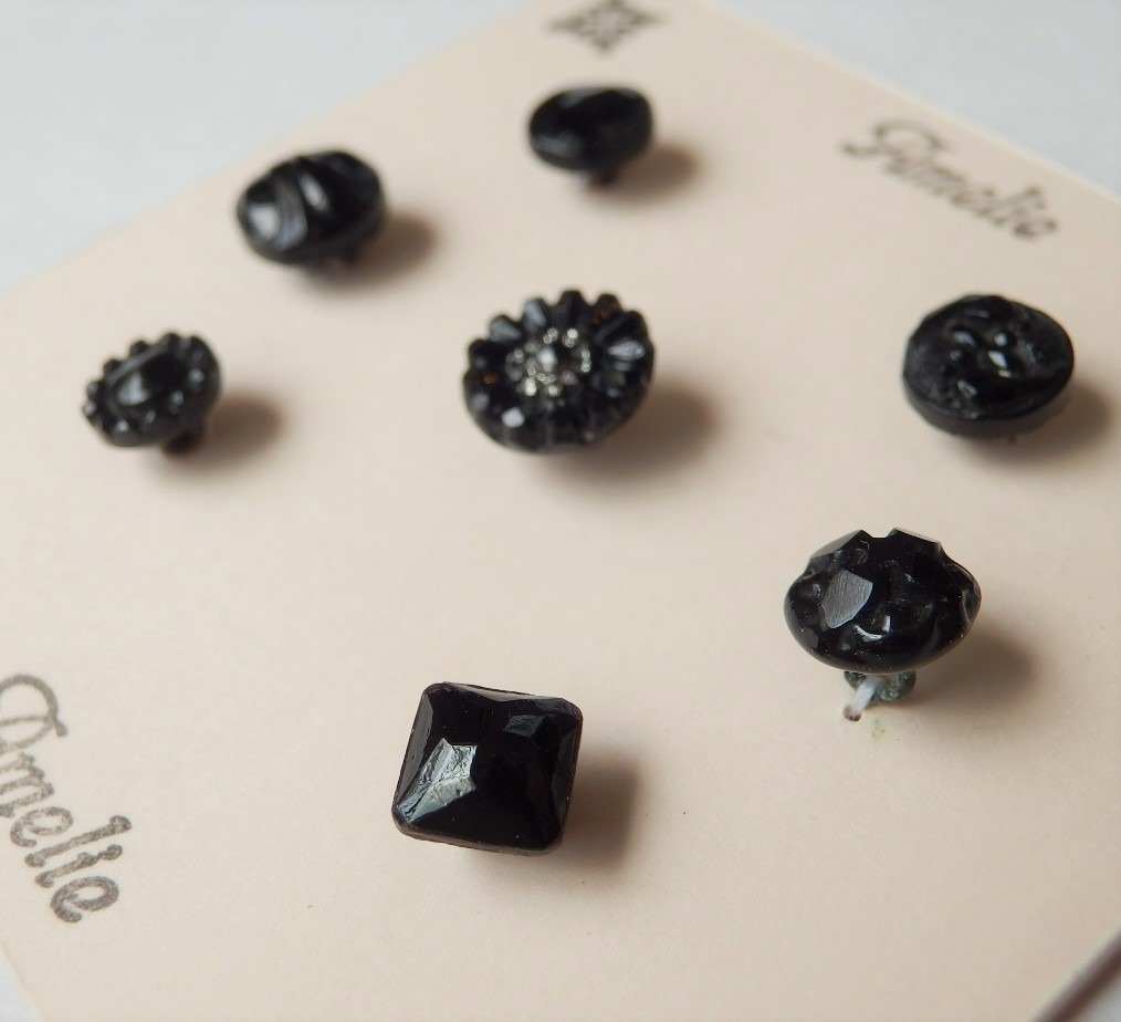 7個セットの黒ボタンは、レアなタイニーサイズのちびちびボタン。