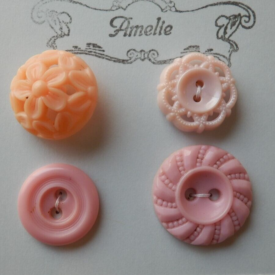 ヴィンテージアーリープラスティックボタン4個セット サイズ:15㎜~18mm *ヴィンテージものですので、過年による多少の汚れや傷がございます