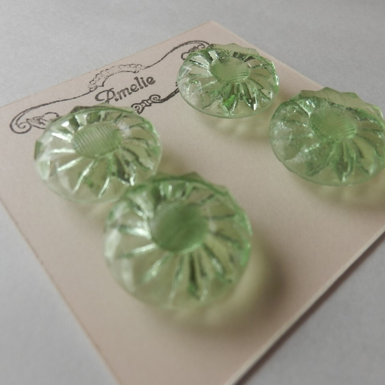 ヴィンテージガラスボタン4個セット サイズ:18mmx18mm *ヴィンテージものですので、過年による多少の汚れや傷がございます