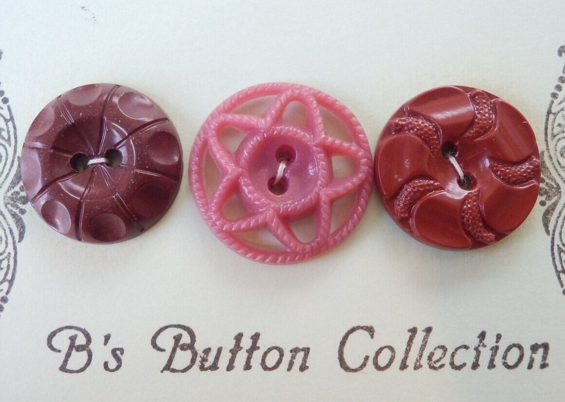 ヴィンテージアーリープラスティックボタン(3個セット) サイズ:18mm~20mm *ヴィンテージものですので、過年による多少の汚れや傷がございます