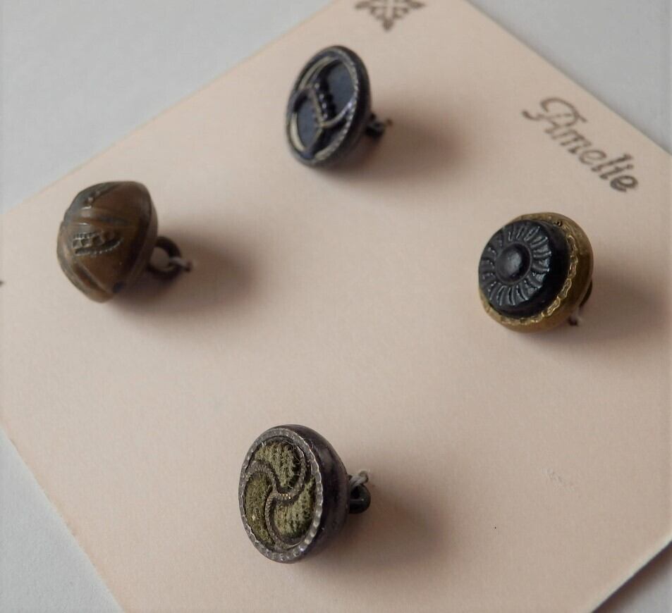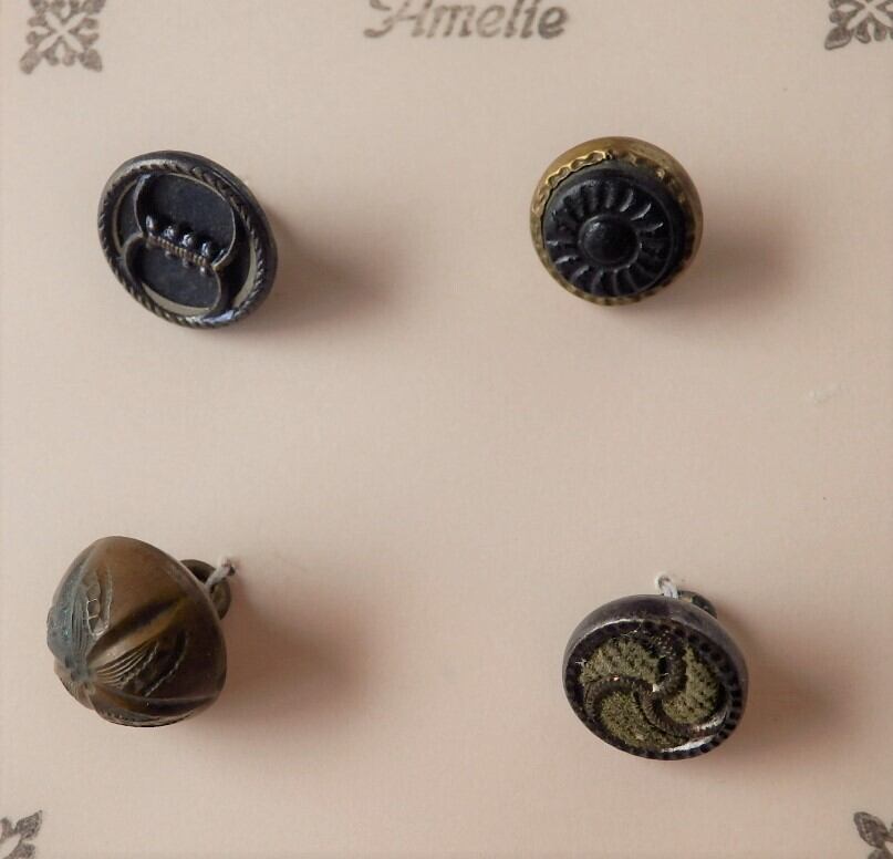 ヴィンテージメタルボタン4個セット ヴィクトリアン サイズ:9mm~10mm *ヴィンテージものですので、過年による多少の汚れや傷がございます