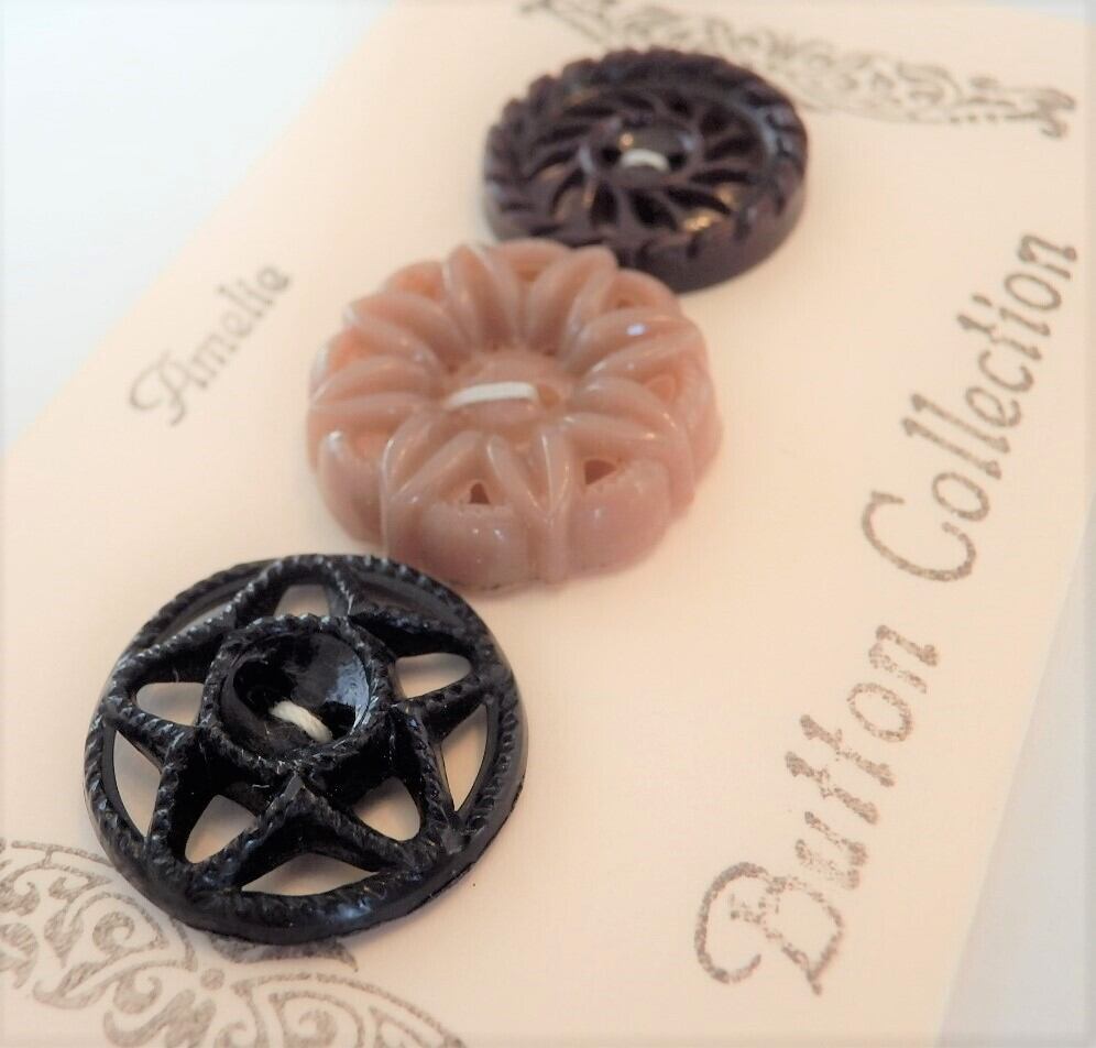 ヴィンテージアーリープラスティックボタン(3個セット) サイズ:18mm~19mm *ヴィンテージものですので、過年による多少の汚れや傷がございます
